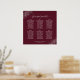 This 6 table seating chart is both simple and elegant with gray text on a burgundy background and lacy silver faux foil floral filigree in the corners. The title reads "please find your table" in an elegant script calligraphy. Sophisticated and chic. Includes table assignments for 60 guests with 10 seats per table.