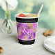 Celebrate the 6th, 33rd, 47th or 48th amethyst wedding anniversary with these stylish paper cups! Elegant black and white serif lettering with gold-dusted hexagonal confetti on an amethyst purple background add a memorable touch for this special occasion and (extraordinary) milestone. Customize with couple's names, years of marriage, and congratulatory messages. Reverse shows identical design.