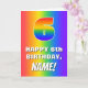 The front of this vibrant and fun birthday themed greeting card design features a large number “6” having a rainbow spectrum inspired gradient pattern. It also features the message “HAPPY 6th BIRTHDAY,”, and an editable name. The background of the front also has a cheerful multicolored rainbow spectrum gradient pattern. The inside has a customizable birthday greeting message, or could perhaps be cleared and left blank if a message is to be written by hand instead. A joyful, editable birthday greeting card like this might be used to celebrate somebody’s sixth birthday. [~Z0000570]