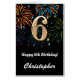 6th Birthday Fireworks Black and Gold Extra Large Card