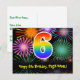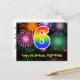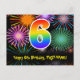 6th Birthday – Fun Fireworks Pattern + Rainbow 6 Postcard