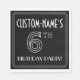 This luxurious 1920s/1930s era inspired art deco style birthday paper napkin design features a personalized name, along with the message “6TH BIRTHDAY PARTY!”. The number “6TH” has a fancy geometric lined look. Stylish paper napkins like this might be fun to use at a party in honor of somebody’s sixth birthday, or some other 6th event. [~Z0000659]