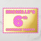 The front of this fun and bold sixth birthday celebration/party foil invitation card features a customizable name, a large number “6th”, the message “BIRTHDAY PARTY!”, and a border, all featuring a feminine light pink and dark pink striped pattern. The back features personalized details about the event, such as the date, time, place, and any other important information. Personalized invitations like these might be used to invite guests to a birthday party being held to celebrate somebody’s 6th birthday. [~Z0000597]