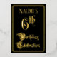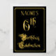The front of this luxurious, ornate, foil sixth birthday celebration/party invitation design features the message “6th Birthday Celebration” in opulent script-style text. It also has a customizable name. The background of the front is colored black by default (although it can be customized to a different color). The back features personalized details about the event, such as the date, time, location, and any other information that may be relevant. Elegant, fancy, customized invitations like these might be used to invite guests to a birthday party/celebration being held to honor somebody’s sixth birthday. [~Z0000589]