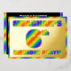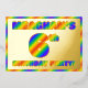 The front of this exciting and vibrant sixth birthday party/celebration foil invitation card features an editable name, a large number “6th”, the message “BIRTHDAY PARTY!”, and a border, all featuring an eye-catching, colorful, rainbow spectrum inspired gradient pattern. The back features personalized details about the event, such as the date, time, location/venue, and any other information that may be important. Fun, upbeat, editable invitations like these might be used to invite guests to a birthday gathering being held in celebration of somebody’s 6th birthday. [~Z0000593]