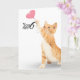 Gold tabby cat with pink heart balloon for 6th birthday on white background.
