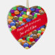 This editable 6th anniversary keepsake ceramic heart has a traditional theme, of candies. It features my painting of colourful sugar coated sweets and a red banner and text. The text can be changed to make it truly personal. Lovely to combine with a matching card for a truly co-ordinated gift.