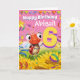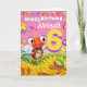 A gorgeous little ladybug hovering above sunflowers and bringing a colourful birthday greeting for the very special 6 year old in your world.