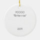 Lightweight, smooth, pure white ornament with nice sheen. Perfect size to be seen from across the room ... and to attract closer inspection! Price was great for ordering enough for the whole family! Clear, bold black design just as requested. Matches the order exactly. Just so nice!