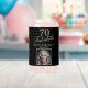 70 and Fabulous Elegant Black Photo 70th Birthday Party Can Glass. The saying 70 and fabulous is in modern script. Make your own 70th birthday party wine labels for her. Customize with the name and age number and insert your photo into the template.