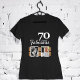 70 and Fabulous Gold Glitter 2 Photos 70th Birthday Black T-shirt. The text is in white color. Add your photos - you can use an old and new photo - before and after photos.