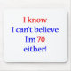 I know, I can't believe I'm 70 either! Humorous design for the 70 year old who knows they don't look 70. Makes a great 70th birthday gift.