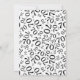 The 70th party theme on the back is a number pattern with the black milestone number 70 scattered in a random pattern, in varied sizes and angles, over a white background.