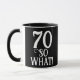 70 So what Funny Quote 70th Birthday Black Mug. Modern white typography on a black background. A great gift idea for someone celebrating the 70th birthday. It comes with a funny quote I`m 70 so what and is perfect for a person with a sense of humor.