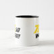 70 So what Funny Quote 70th Birthday Two-Tone Coffee Mug. A great birthday gift idea for a man or a woman who celebrates 70th birthday and has a sense of humor. The text reads 70 So what - you can change the age. The text is in yellow and black.