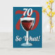 70 so what motivational and funny 70th birthday card. The design has a red wine glass with an age number above and the background is the age in red color. Text 70 So what is motivational, positive and funny, and is perfect for a person with a sense of humor. You can change the age with any other age. Great for a woman or a man who celebrates the seventieth birthday.