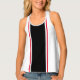 70s Fun Sporty Black Red Racing Stripes On White Tank Top