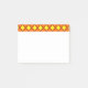 This notepad has a 1970s design of solid yellow diamonds inside brown diamond outlines on a field of orange.