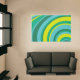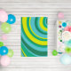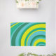 70s Retro Groovy Wave Rainbow Teal Green Yellow Rug