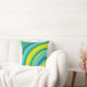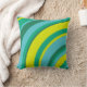 70s Retro Groovy Wave Rainbow Teal Green Yellow Throw Pillow