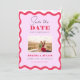 70s Retro Wavy Frame Pink and Red Photo Seventies Save The Date