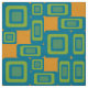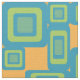 Fabric inspired from the 60s-70s with a orange background and stylistic blue cubes in different sizes and shapes.