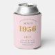 Celebrate a milestone 70th birthday with this chic, personalized can cooler! Featuring a sophisticated pink and grey design and the iconic 'Born in 1956' year, it's the perfect gift for keeping drinks cold in style. Customize it with the recipient's name for a unique keepsake they'll cherish. Ideal for birthday parties, celebrations, or a special souvenir.