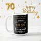 For those born in 1956 and celebrating their 70th birthday we have the ideal birthday coffee mug. The black background with a white and gold vintage typography design design is simple and yet elegant with a retro feel. Easily customize the text of this birthday gift using the template provided. More gifts and party supplies available with the "Legendary" design in the store.