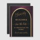A magnetic Save the Date card for a 70th birthday party. A black and burgundy background, decorated with a faux gold arch. Personalize and add a date and your name. The text: Seventy and Save the Date is written with a large trendy hand lettered style script.