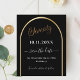 A Save the Date for a 70th birthday party. A black background, decorated with a faux gold arch. Personalize and add a date and your name. The text: Seventy and Save the Date is written with a large trendy hand lettered style script.