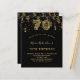 A modern, stylish and glamorous invitation for a 70th birthday party. A black background, decorated with confetti. The name is written with a modern hand lettered style script. Personalize and add your party details. Number 70 is written with a trendy balloon style font, leopard pattern.