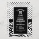 70th Birthday Black White Polka Dot Zebra Stripes Invitation