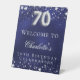 70th Birthday blue silver stars welcome party Pedestal Sign