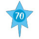 Star shaped, acrylic cake topper for a 70th birthday milestone celebration. Cake topper is blue with white numbers. You may edit birthday age as desired.