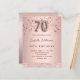 A modern, stylish and glamorous invitation for a 70th birthday party. A faux rose gold metallic looking background with rose gold and pink dripping stars and a glitter band. The name is written with a modern dark rose gold colored hand lettered style script. Personalize and add your party details. Number 70 is written with a balloon style font, script.