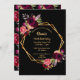 70th birthday burgundy floral gold geometric black invitation