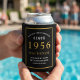 Celebrate a milestone 70th birthday with this elegant and personalized can cooler! This stylish drink insulator is the perfect party favor or gift for someone born in 1956.