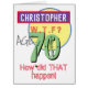 Celebrate a birthday with a personalized card showing name and birthday age. Funny message says "How did THAT happen!". Add your own personal message inside too. 70 years old.
