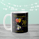 A stylish 70th birthday celebration mug, with sparkling wine, ice bucket, flute glasses as well as age balloons and confetti all on a black background with gold colored text. This fabulous birthday mug makes a fabulous 70th birthday gift (or for any age) Perfect for milestone birthdays such as 40th, 50th 60th 80th 90th and 100th. Personalize with a custom name , birthday date and your own message. Background color can be amended if needed, just click on the personalize it further button
