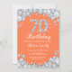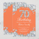 70th Birthday Coral and Silver Diamond Invitation