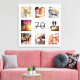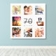 A unique 70th birthday gift or keepsake, celebrating her life with a collage of 8 of your photos. Add images of her family, friends, pets, hobbies or dream travel destination. Personalize and add a name, age 70 and a date. Gray and black colored letters. A chic white background.