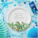 Perfect table decor for a December birthday party. Holly is the birth flower for that month. It forms a pretty watercolor bottom border on this festive personalized round paper plate. The birthday celebrant's name, age and birthdate are placed above it using elegant calligraphy and typography. All text is editable.
