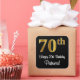 This sophisticated, elegant, and luxurious birthday-themed square sticker design features a large ordinal number “70th” having an imitation/faux gold-like gradient pattern, plus the birthday greeting message “Happy 70th Birthday,” and a custom name in a script-style font. The background is colored black. Luxurious stickers like this might be used when wrapping a birthday present or gift being given to somebody who is celebrating their seventieth birthday, or perhaps might be given out to the attendees at a birthday celebration or party. [~Z0000517]