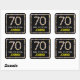This floral, nature-inspired birthday square sticker design features the message “Happy 70th Birthday,” along with an editable recipient name. The large number “70” plus the border consist of flower icons. Stickers like these might be given out or used at a party held for somebody who is celebrating their seventieth birthday, or perhaps used when preparing invitations or wrapping presents/gifts for such an event. [~Z0000652]