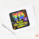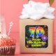 This joyful and cheerful birthday-themed square sticker design features a large number “70” having a colorful rainbow spectrum gradient inspired pattern. It also features the message “Happy 70th Birthday,”, and a personalized name. The background features an exciting and colorful pattern inspired by the look of bursting celebratory fireworks. Fun, personalized stickers like this might be given as a birthday present, or used while wrapping gifts/presents, or perhaps used as a birthday party decoration when celebrating somebody’s seventieth birthday. [~Z0000579]