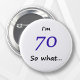 A great button for someone celebrating 70th birthday. It comes with a funny quote I`m 70 so what!, and is perfect for a person with a sense of humor.