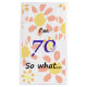 For someone celebrating 70th birthday. It comes with a funny quote I`m 70 so what... on yellow and orange flowers, and is perfect for a person with a sense of humor.