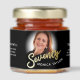 Personalized custom photo and name 70th birthday mini honey jar favors. Ideal for a special 70th birthday party celebration to show your love and thanks to your sweet as honey guests. Gold printed effect script lettering seventy with your own fade to black photo. Add your own photo and birthday name, plus fun ingredient list and thank you message on the label sides. Other matching items are available. Original art and design by Sarah Trett for www.mylittleeden.com