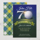 Celebrate a milestone in style with this elegant 70th birthday golf-themed invitation—perfect for honoring a lifetime of memories with a fun, sophisticated design guests will love. Featuring a golf ball, banner and fun party font. Backer is green and gold plaid.