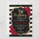 Yes, you can print on the back of your invitation for free! Most designs already have a corresponding design on the back that can be personalized using the Design Tool and going to Layers. This is a great way to communicate more information or further personalize your 70th Birthday Invitation Black White Stripes Roses. The option is really up to you.
